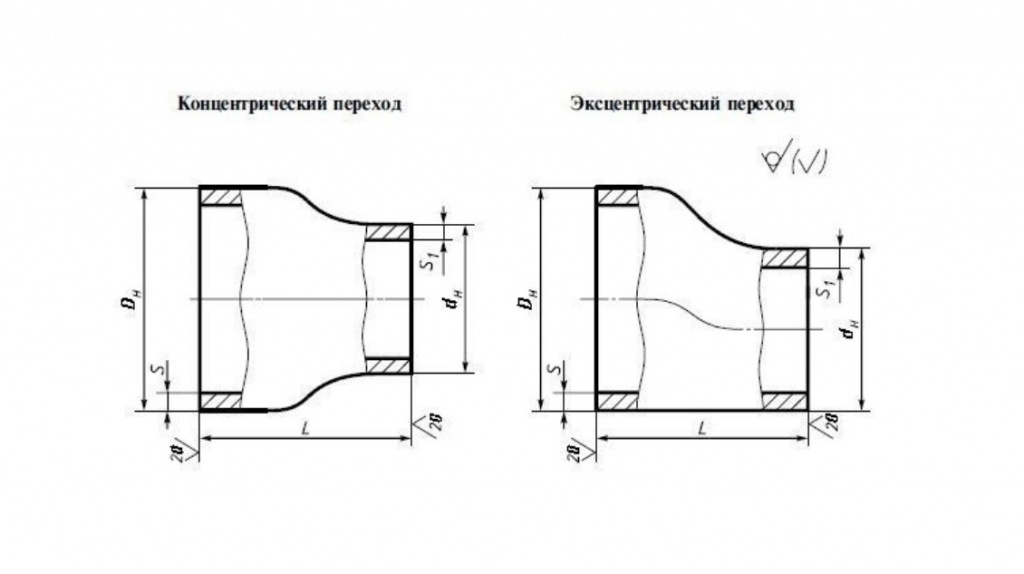 - концентрические – используются для стыковки вертикальных трубных участков, форма изделий напоминает усеченный конус;